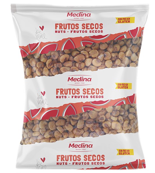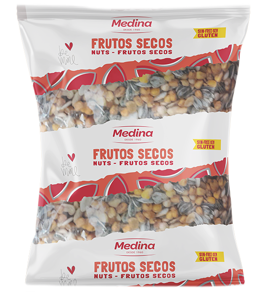 INGREDIENTES: Maíz frito 35% (España), pipas de girasol saladas 25% (ARGENTINA), garbanzo tostado 15% (TURQUÍA), CACAHUETE 15% (CHINA), pipas de calabaza 7% (China), habas fritas 3% (España), aceite de girasol, sal y harina de arroz. Puede contener trazas de frutos de cáscara. «»SIN GLUTEN»»»